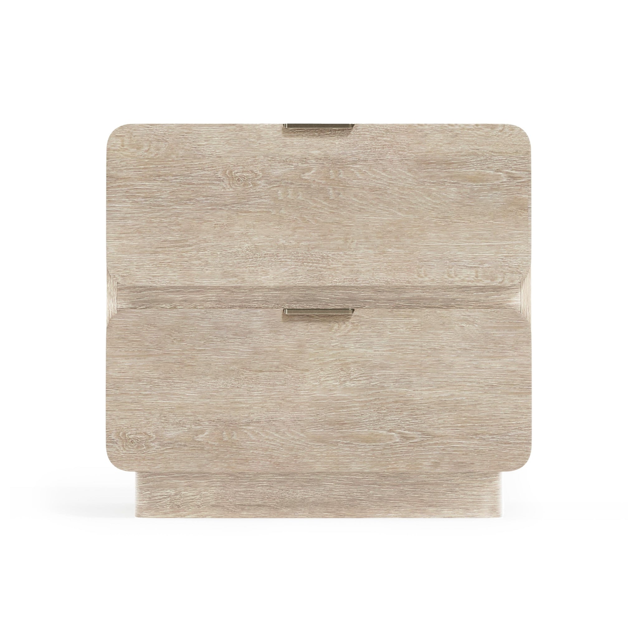 Bring coastal texture and organic sophistication to your bedroom with the Antibes Nightstand by Bernhardt. This two-drawer bedside table features a clean-lined wooden case wrapped in hand-applied twisted abaca, giving it a natural, sculptural character. The touch-to-open drawers offer practical storage while preserving the minimal, hardware-free silhouette.