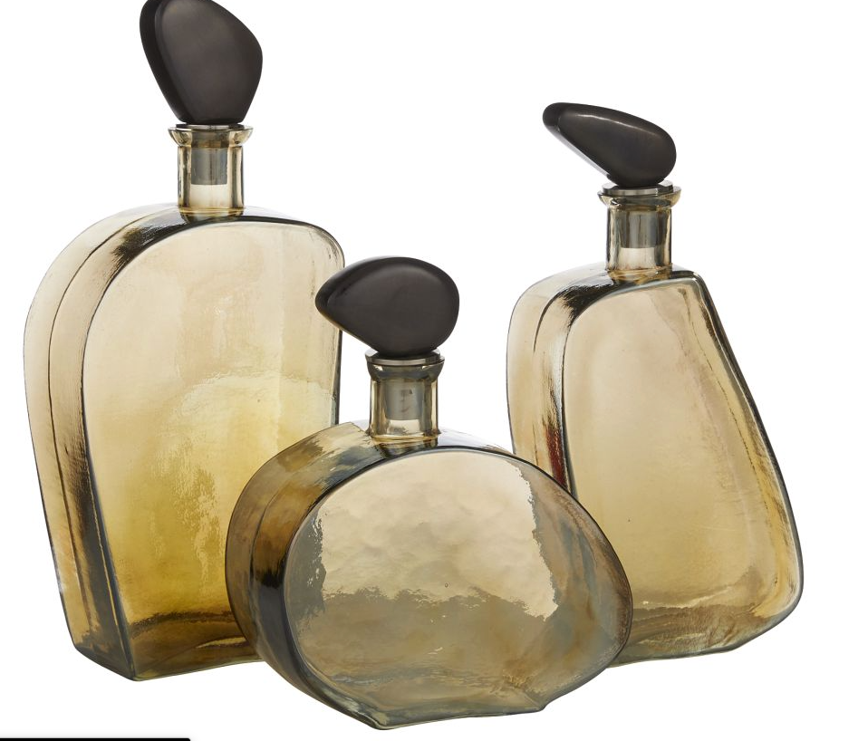 Shop the Arteriors Home Calhoun Decanters, Set of 3. Hand-blown glass with stitched leather accents—sophisticated barware for display or serving.