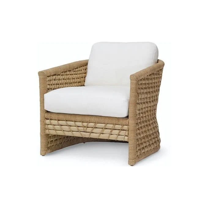 Pole rattan frame and legs in natural seagrass tied with lampakanai rope. Seagrass is natural and may vary in color. Chair comes with loose seat and back cushions. Coordinates with the Capitola collection.