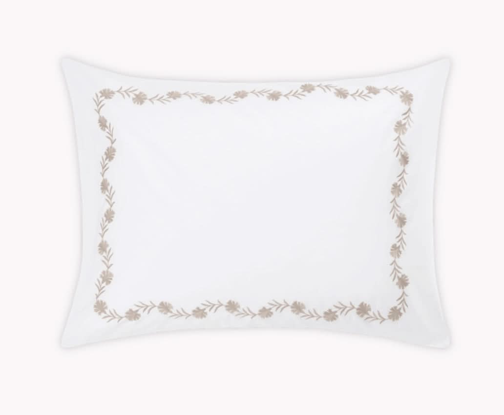 Bring timeless refinement to your bedroom with the Matouk Daphne Sham. Woven from 100% long-staple cotton percale with a 500 thread count, this sham has a crisp, breathable feel. Delicate floral embroidery along the border adds a graceful touch, blending classic elegance with modern charm. Available in Standard, King, and Euro sizes, the Daphne Sham coordinates beautifully with duvet covers, sheets, and pillowcases from the Daphne Collection. Both luxurious and durable, it’s a versatile accent piece for a beautifully made bed.